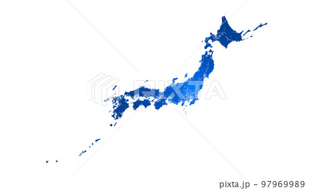 日本地図のイラスト: 青色ポリゴン背景