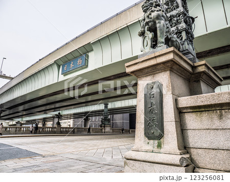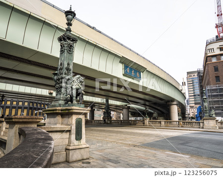 日本橋川に架かる重要文化財「日本橋」・日本橋川の上を通る首都高速の高架橋