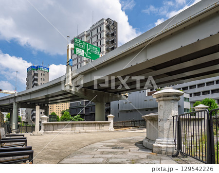 日本橋川の上を通る首都高速道路・日本橋川に架かる常磐橋の親柱
