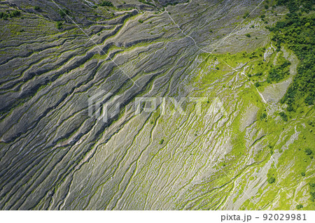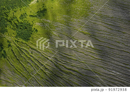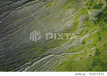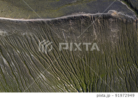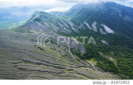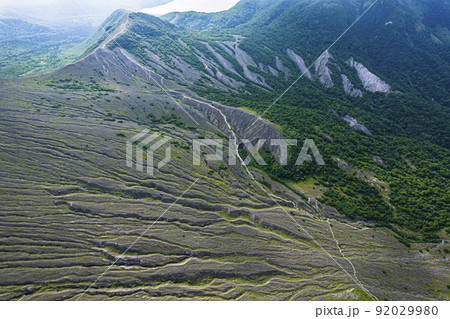 ガリ 侵食によってできた特徴的な山肌(樽前山 空撮)
