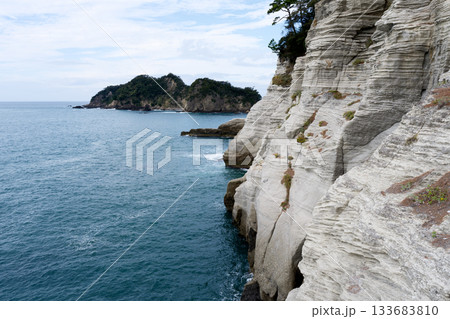 海沿いにそびえる奇岩の風景