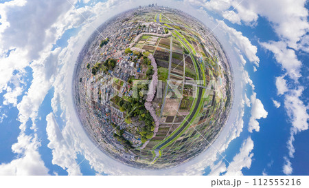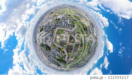 空撮「埼玉県」360度カメラで撮影した春の見沼田んぼ