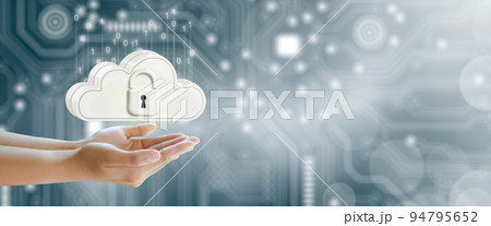 Businessman hand holding Cloud computing technology internet storage network. Cloud service, Cloud technology, and Cloud storage Concept.