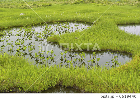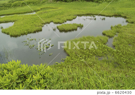 秋の尾瀬 牛首分岐付近の池塘と燧ケ岳