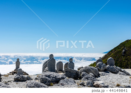 雲海を見つめるお地蔵さん 鳳凰三山地蔵ヶ岳賽の河原