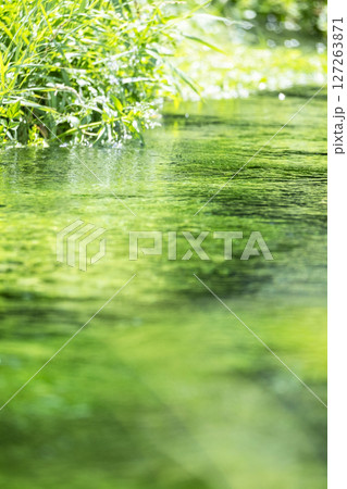 背景素材 水辺の新緑・清流・エコイメージ(大山 伯耆町)