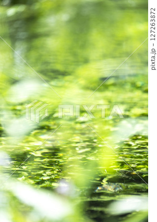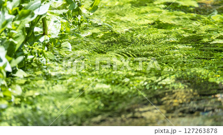 水面に映る新緑・清流・エコイメージ(大山 地蔵滝の泉)