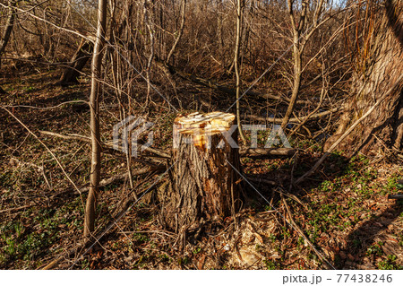 Rotten tree stump in the forest.