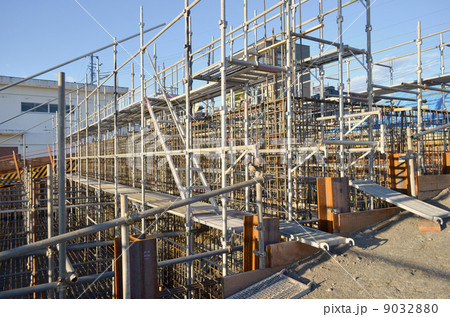 建設現場 くさび足場 ビケ 青空