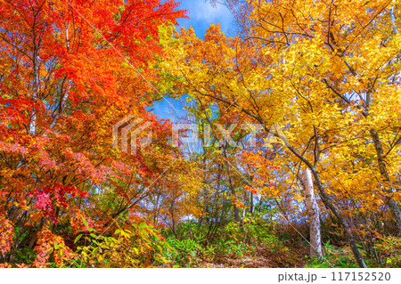 【紅葉素材】志賀高原の紅葉した木々【長野県】
