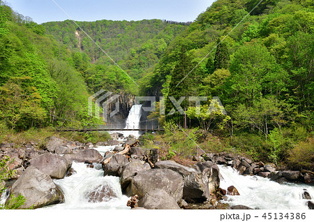雪解け水が流れる苗名滝 新潟県観光名所 日本の滝百選 妙高高原自然歩道