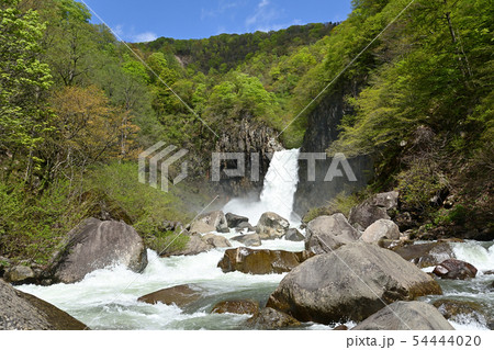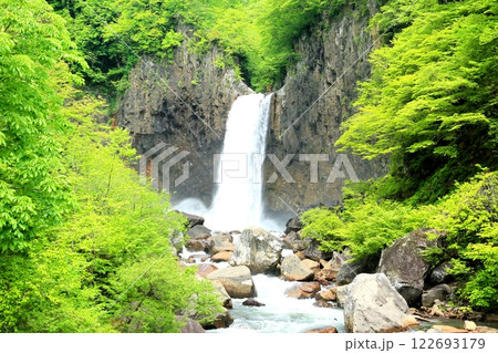 雪解け水が流れる苗名滝 新潟県観光名所 日本の滝百選 妙高高原自然歩道