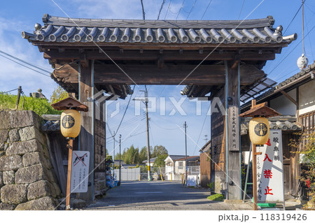 秋の京都 紅葉に包まれた勧修寺 中門(勅使門)