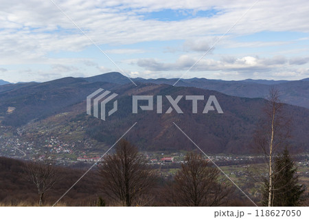 mountainous carpathian landscape of ukraine with forested hills in summer. view from mountain pikui