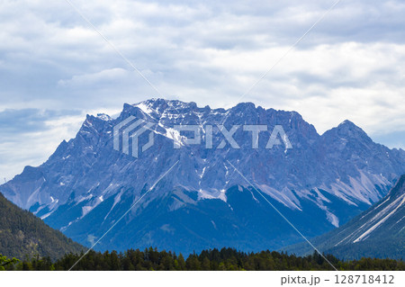 Panorama view Zugspitze mountain alpine landscape in Alps Tyrol Austria.
