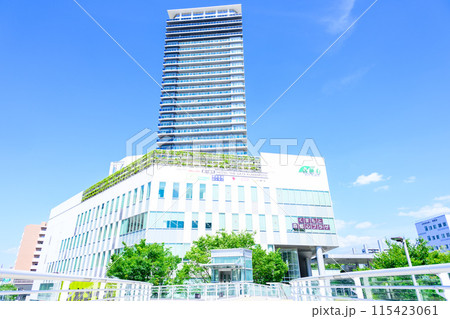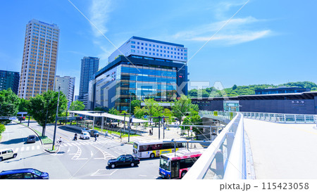 うららかな青空日和に映える熊本駅周辺風景(東口駅前・交通機関)【東口方面から撮影素材】