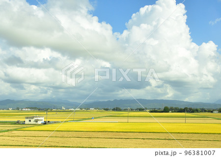 酒田市の秋の水田風景
