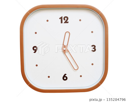 Minimalist wooden square wall clock isolated on white background showing 00:25 or 12:25
