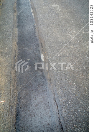 工事の後、仮の舗装をしたアスファルト