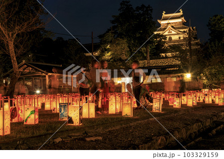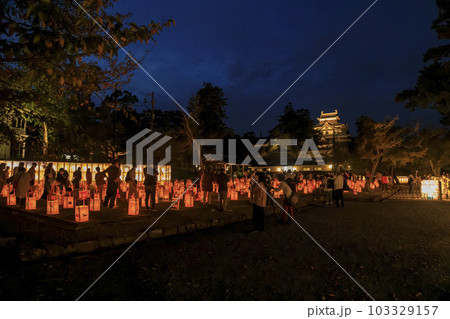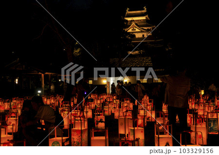 松江城水燈路 沢山の灯篭と松江城天守閣