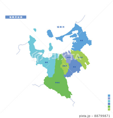 福岡市行政区・福岡市地図 雨の日カラーで色分けしてみた