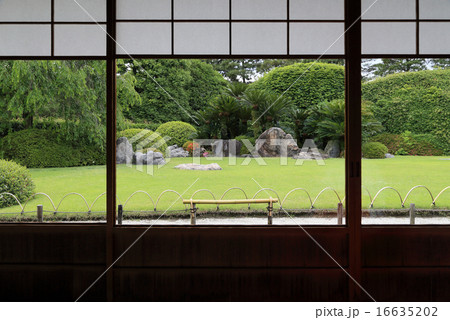 京都市「城南宮」室町の庭の茶室(楽水軒)より眺める桃山の庭