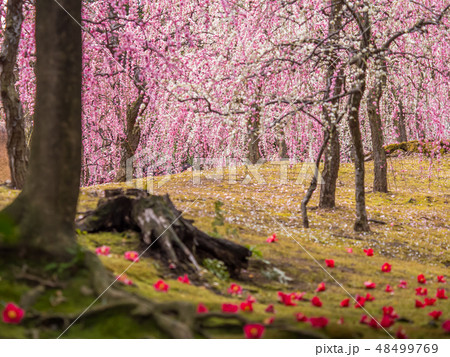 早朝の城南宮 城南鳥居としだれ梅(京都市伏見区)