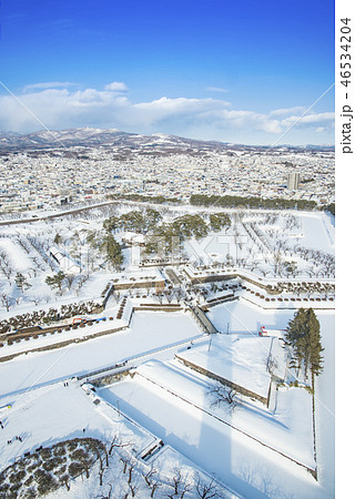 北海道・五稜郭タワーから見下ろした冬の五稜郭