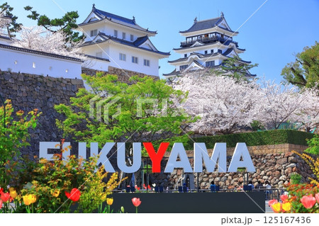 【広島県】快晴の福山城と満開の桜(天守閣 月見櫓)