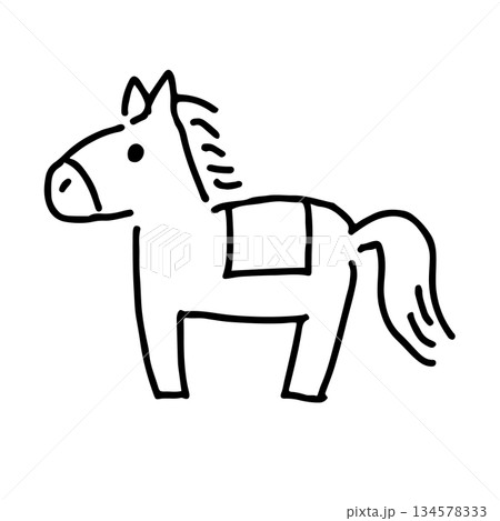 シンプルでかわいい手描き風の馬の線画イラスト(午年・2026年)
