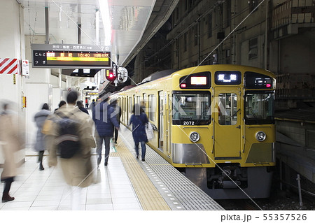 帰宅時間帯の池袋駅に停車中の西武池袋線2000系電車(急行)
