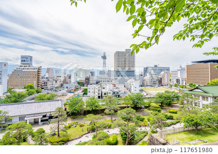 甲府城 天守台からの眺め 南南西 遊亀橋 内堀 鍛冶曲輪の井戸 日本庭園 管理事務所 山梨県庁