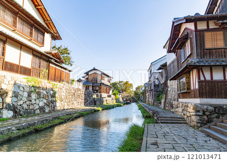 滋賀県近江八幡市 秋の八幡堀とまちなみ