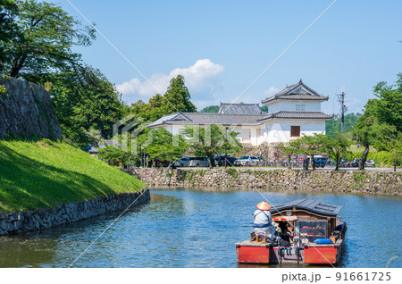 快晴の彦根城のお堀を遊覧する屋形船|滋賀県彦根市