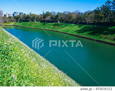 千鳥ヶ淵公園から半蔵濠の土手に咲く菜の花
