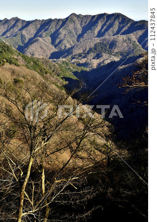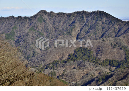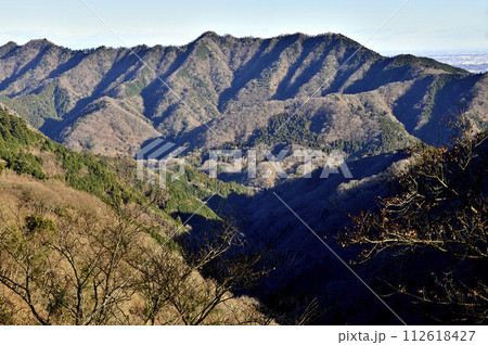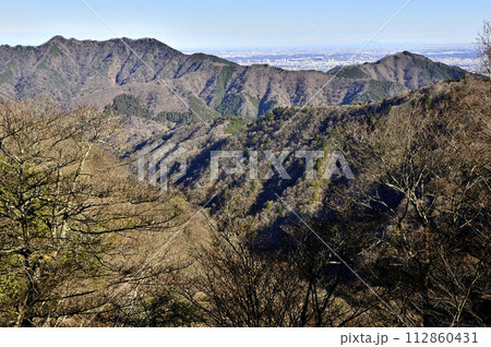 丹沢の能ノ爪 鍋嵐東尾根より望む相州アルプスの華厳山と遠くに東京スカイツリー