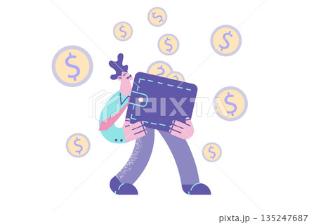 手のひらと財布と円マークのコイン|お金・貯金・支払いのベクター素材
