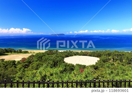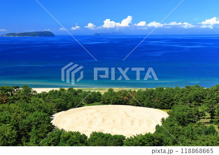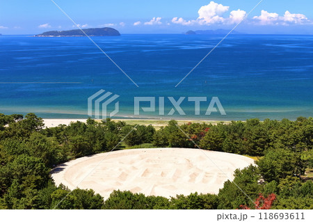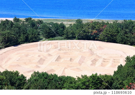 【香川県】晴天の銭形展望台から見た 銭形砂絵(琴弾公園)