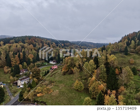 winding path through autumn landscape, tranquil rural scene with winding roads and colorful foliage