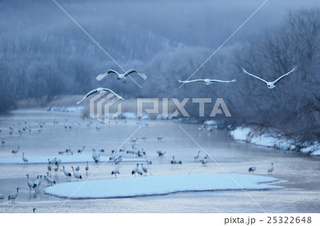 早朝にねぐらから飛び立つ丹頂(北海道)