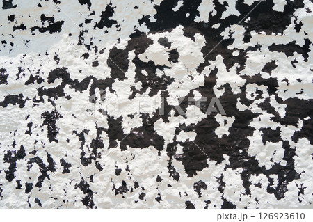 黒地に剥がれた白いペンキ