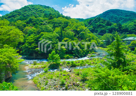 栃木県那須塩原市 夏の塩原温泉と箒川の風景