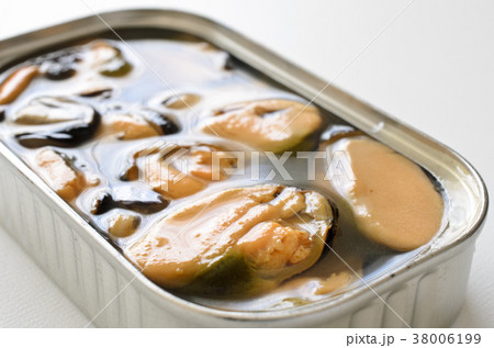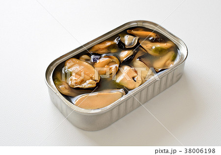 Marinated mussels isolated in a jar on a white background. Full depth of field.