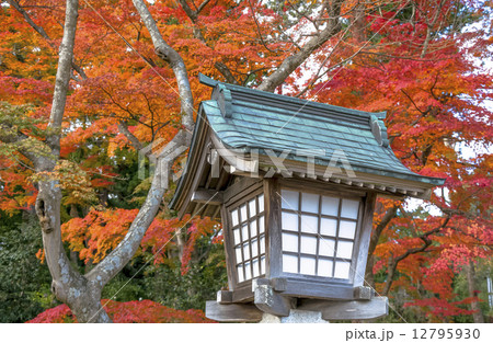 志波彦神社 灯籠 紅葉 秋