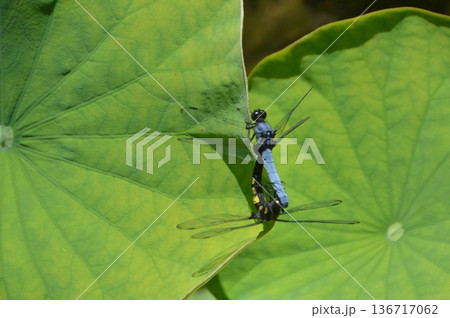 ハスの葉にとまるオスのシオカラトンボ