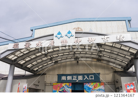 塩釜水産物仲卸市場の入口看板(宮城県塩釜市)