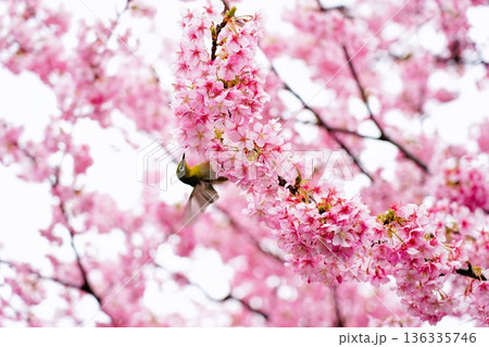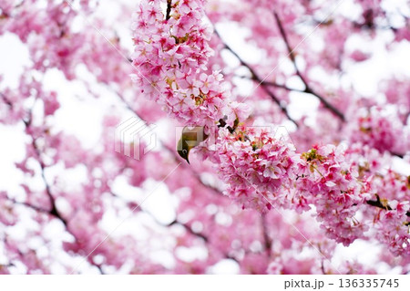 境川の河津桜とメジロ
