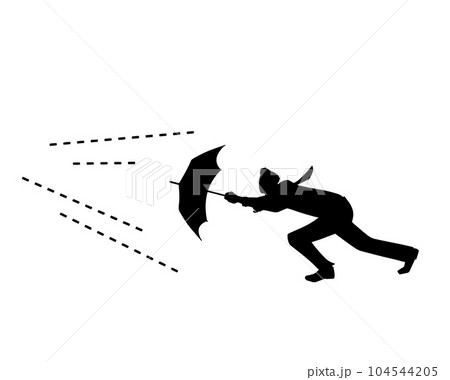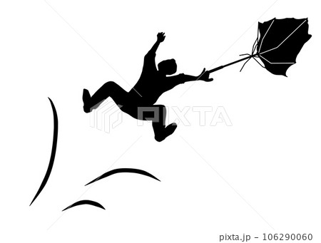風に飛ばされた男性のシルエットイラスト