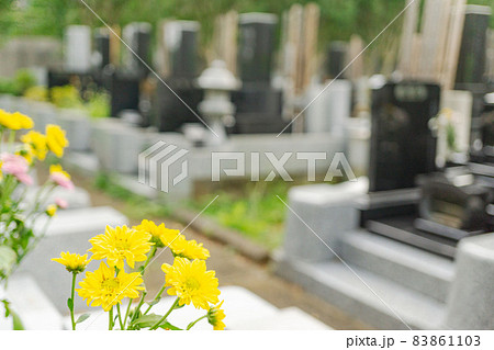 墓地と花 ボケ画像【お彼岸・お盆イメージ】
