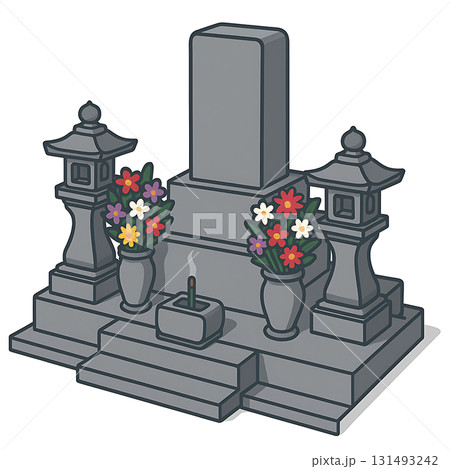 お墓 墓石【手描き水彩画】白バック 透過背景 コピースペースあり